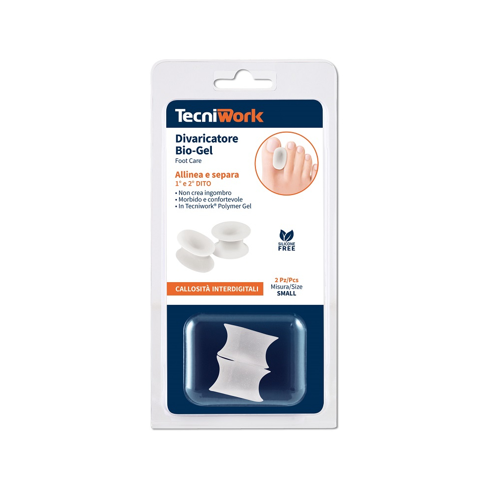 Bio-Gel Divaricatore per dita in Tecniwork Polymer Gel trasparente. Allinea l’alluce alle altre dita in caso di accavallamento, impedisce lo sfregamento tra 1° e 2° dito, evita la formazione di callosità interdigitali. Lavabile e riutilizzabile.