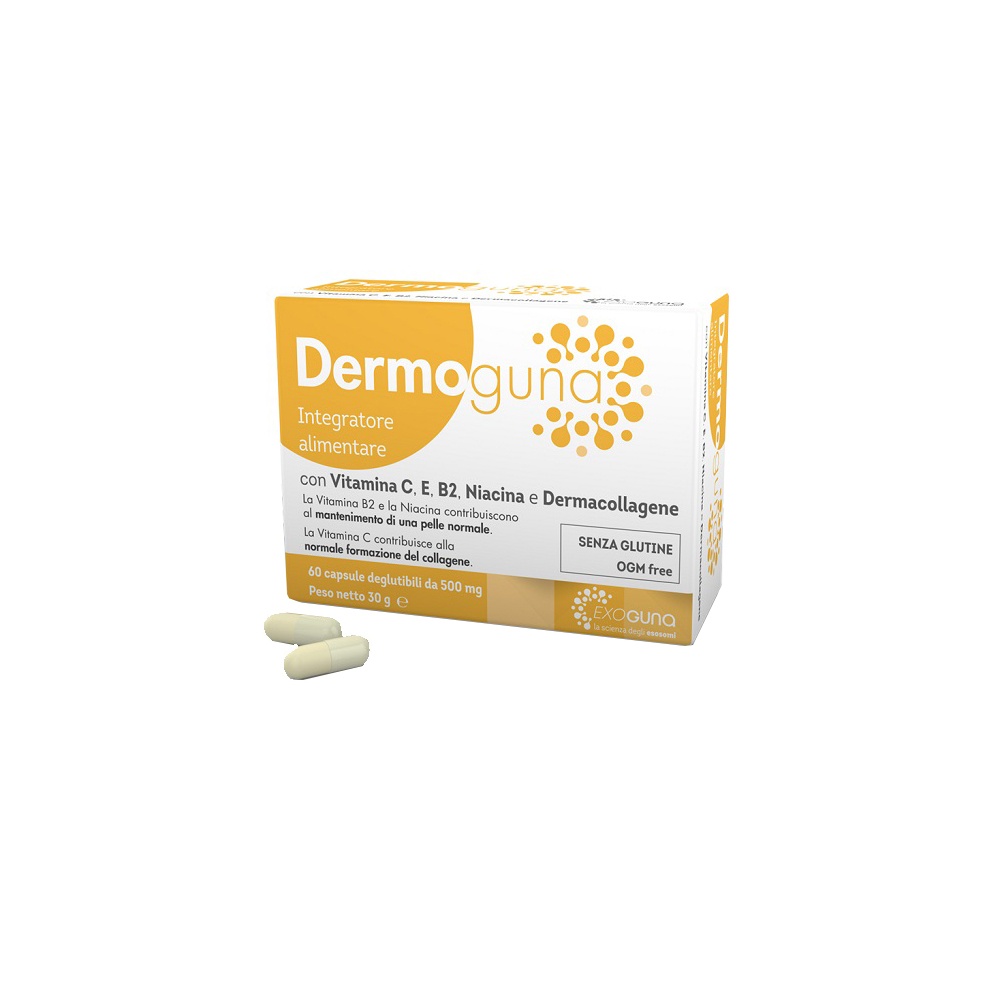 Dermacollagene di suino liofilizzato: componente esclusivo e certificato, frutto della più recente ricerca nutrizionale Guna. Il dermacollagene contiene elementi nutrizionali essenziali quali proteine, aminoacidi, vitamine specifiche ed acidi nucleici, utili per coadiuvare il rinnovamento della pelle.