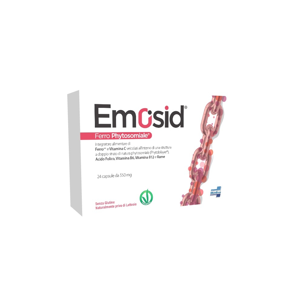 Descrizione Integratore alimentare a base di ferro Phytosomiale (ferro++ e vitamina C veicolati all’interno di una struttura a doppio strato di natura Phytosomiale: tecnologia Phytobilayer). L'uso del ferro Phytosomiale permette di eliminare completamente i disturbi normalmente correlati all'uso del ferro orale. La biodisponibilità del Fe++ presente in Emosid è particolarmente elevata ed è attribuibile all’utilizzo di un'innovativa forma di Phytosoma attivo a doppio strato, ottenuto attraverso la particolare e brevettata tecnologia Phytobilayer. Il ferro Phytosomiale supera indenne la barriera gastrica e viene assorbito a livello intestinale. Il ferro Fe++ contribuisce alla formazione di globuli rossi ed emoglobina, alla funzionalità del sistema immunitario, al normale trasporto di ossigeno nell’organismo e riduce stanchezza ed affaticamento. Il rame e la vitamina C contribuiscono al normale trasporto e assorbimento del ferro orale nell’organismo. L’acido folico contribuisce alla normale emopoiesi.