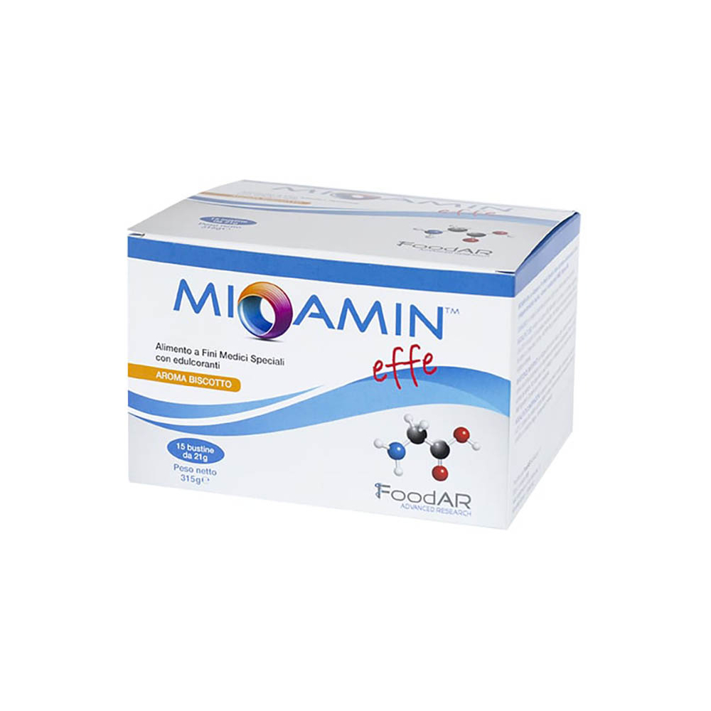 Si consiglia di assumere una bustina al giorno, salvo diversa indicazione del medico. Versare una bustina di MIOAMIN effe in un bicchiere o in uno shaker. Aggiungere circa 200 ml di acqua o di una qualsiasi bevanda (latte, thè) fredda o a temperatura ambiente. Mescolare e bere in un breve lasso di tempo. In alimentazione artificiale, MIOAMIN effe può essere somministrato anche tramite sonda e/o PEG.