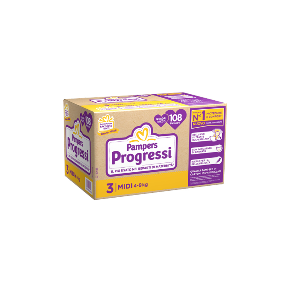 PAMPERS QUADRI PROGRESSI MIDI 108 PEZZI