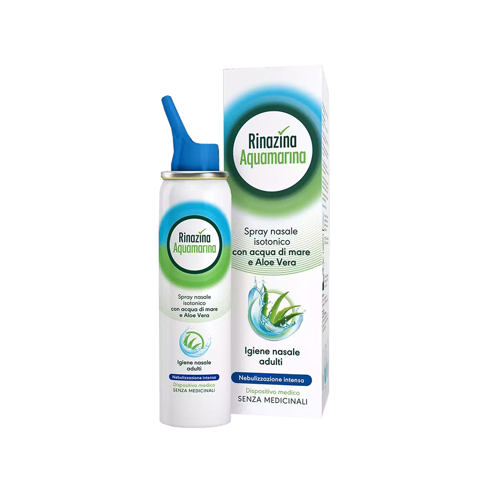Spray nasale isotonico per adulti con acqua di mare, Aloe vera nota per le sue proprietà emollienti e idratanti e senza medicinali. Lava via le impurità, deterge le cavità nasali, idrata e lenisce le mucose irritate.