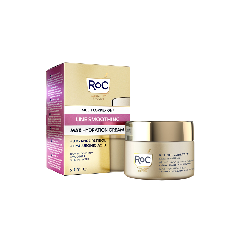 Descrizione Crema idratante a rapido assorbimento formulata con Retinolo RoC e acido ialuronico per idratare la pelle in profondità per 24 ore e ridurre visibilmente le linee sottili e le rughe.