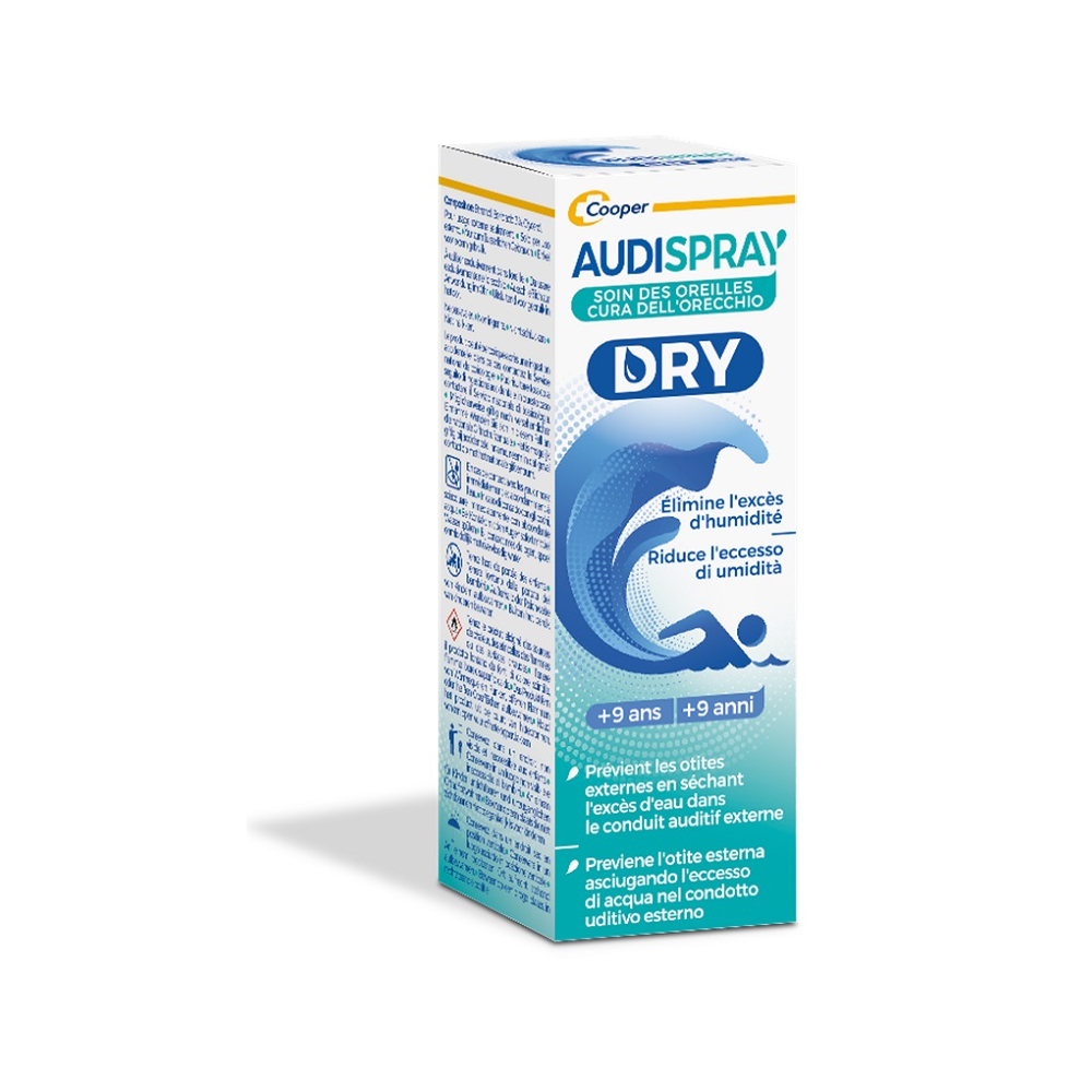 Descrizione Audispray Dry crea le condizioni favorevoli alla prevenzione degli effetti dannosi dovuti a un'eccessiva umidità nell'orecchio.